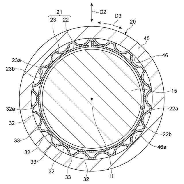 前記支持受け部は、前記回転軸に対面し、且つ前記回転軸に対して凹んだ凹曲面を備えており、