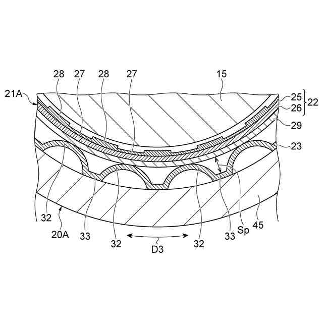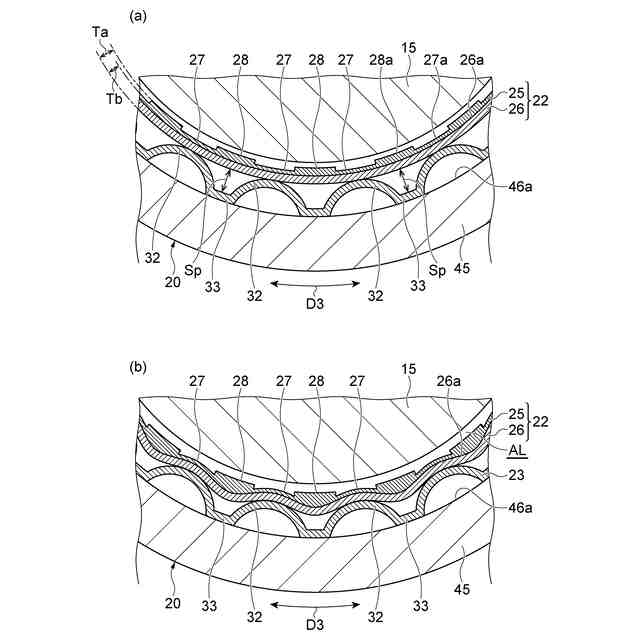 いくつかの態様において、支持受け部と支持回避部とは、回転軸の周方向で交互に配置されていてもよい。厚さの異なる支持回避部と支持受け部とを回転軸の周方向で交互に配置することで、トップフォイルには周方向で厚さ分布が生じ、空気膜厚は周方向で変化して圧力分布を形成し易くなる。その結果、くさび効果を得やすくなり、回転軸を支持できる負荷容量を増加できる。