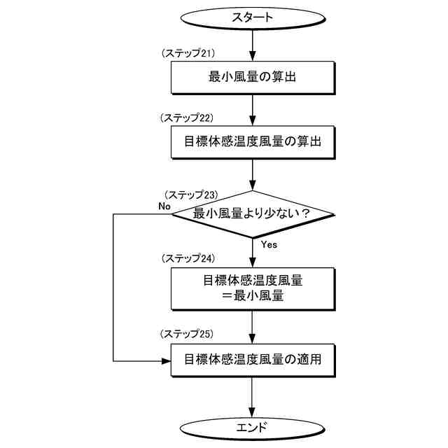 前記風量制御部は、前記最小風量比較部が前記目標体感温度風量が前記最小風量よりも少ないと判断した場合、前記最小風量と同一になるように前記風量を制御する、