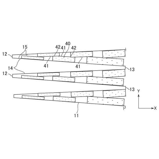 前記一対の流入面および前記一対の流出面上に前記折り目に沿う方向に複数列配置され、前記一対の流入面間および前記一対の流出面間の間隔を保持する間隔保持部材と、