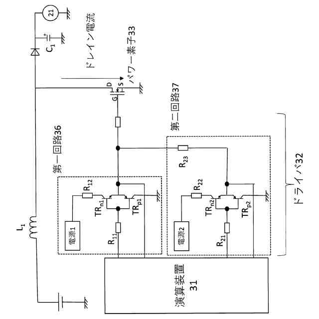 前記第一回路と前記第二回路との切り替えによって、ゲート側に流れる電流量を変化させることで、抵抗を可変する第三の解決手段を採用できる。