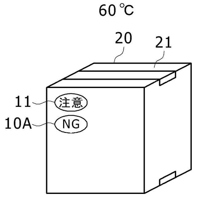 使用注意模様を40℃以上で色彩が変化する感温変色性のインク組成物により形成し、使用禁止模様を60℃以上の高温域で色彩が禁止色に変化する感温変色性のインク組成物により形成した請求項5記載の輸送用外装箱。