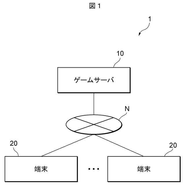 図1は、本実施形態に係るゲームシステム1のシステム構成の一例を示す図である。図1に示すゲームシステム1は、ゲームサーバ10と、1以上の端末20とを備える。ゲームサーバ10及び端末20は、インターネット、イントラネット、無線LAN又は移動通信等の通信ネットワークNを介して互いに通信可能に接続されている。