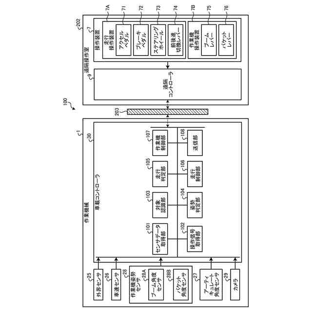 図1は、実施形態に係る作業機械1の遠隔操作システム200を示す図である。遠隔操作システム200は、作業現場201に存在する作業機械1を遠隔操作する。遠隔操作システム200の少なくとも一部は、作業機械1の外部に設けられた遠隔操作室202に配置される。遠隔操作システム200は、操作装置7と、表示装置8と、遠隔コントローラ9とを備える。