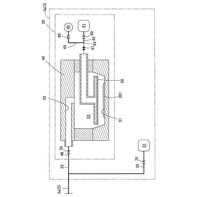 好ましい様相は、前記気化部は、生成した前記材料ガスを外部に供給するガス供給配管部が接続されており、前記ガス供給配管部の中途に、開状態とすることで前記ガス供給配管部の上流側から下流側への前記材料ガスの流通を許容し、閉状態とすることで前記ガス供給配管部の上流側から下流側への前記材料ガスの流通を遮断可能な第3開閉部を備える。