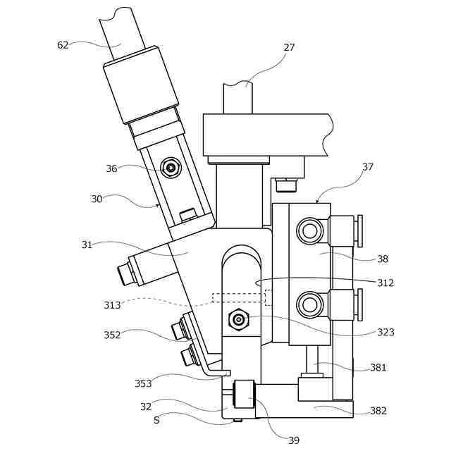 以下、本発明の実施の形態を図1ないし図8に基づき説明する。図1において10は、ワークWにねじSを締結するねじ締め機である。このねじ締め機10は、移動手段20と、この移動手段20の駆動を受けて移動するドライバユニット24、外部の供給装置から供給されたねじSをドライバユニット24の移動経路上に保持するチャックユニット30を有しており、前記移動手段20およびドライバユニット24は、制御部(図示せず)によって駆動を制御されている。