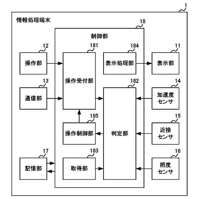 前記判定部は、前記照度センサが測定した明るさを示す数値が所定の閾値を下回る場合に、前記操作受付部が受け付けた入力操作が前記ユーザによる操作ではないと判定する、