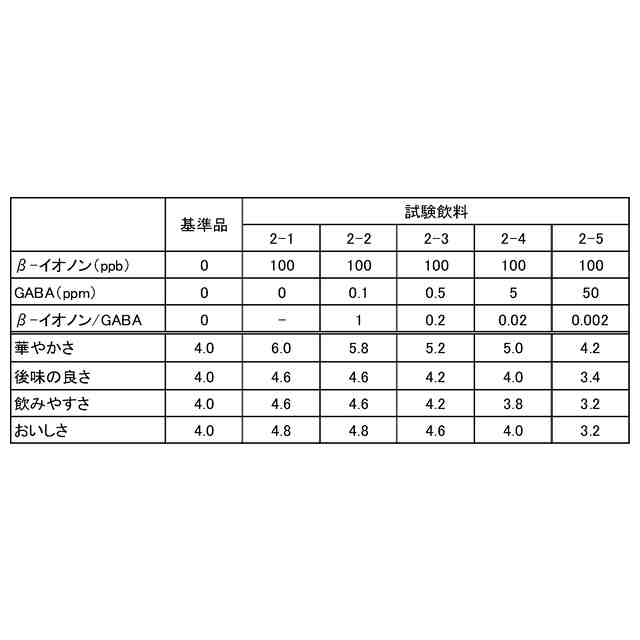 前記GABA(ppm)に対する前記β-イオノン(ppb)の比はppb換算で0.002~2である、