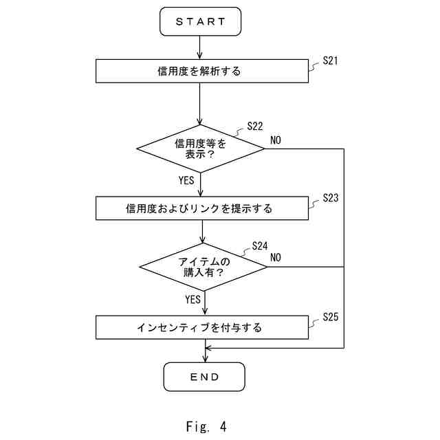 前記決定部は、前記第2のユーザが前記アイテムを視認した場合、前記アイテムがNFT化されていることを前記第2のユーザに示唆し、前記第2のユーザが選択操作を行った場合、前記信用度および前記リンクを提示すると決定する