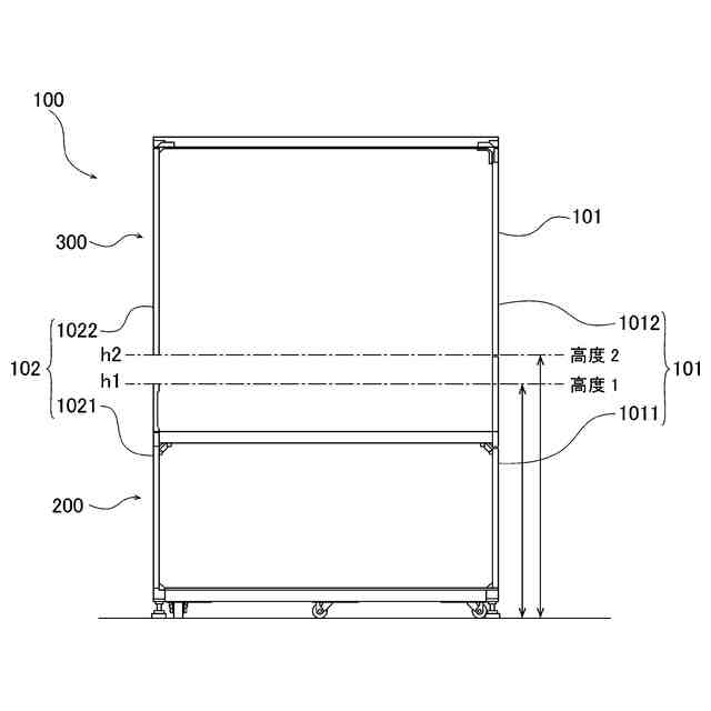 前記第2柱の前記上柱部分の下端は、鉛直方向において前記第2高さより高い第2位置にあり、