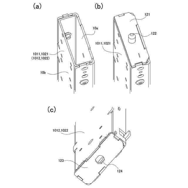 (a)(b)(c)上下枠の第一柱に取り付けられた接続板の概略図