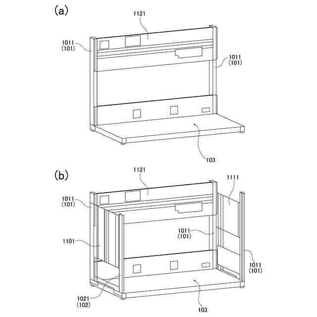 【解決手段】枠体と、枠体に支持され、鉛直方向に交差する着脱方向に沿って移動させることで枠体に対して着脱可能なユニットと、を備え、枠体は、着脱方向及び鉛直方向に交差する第1方向において間隔をあけて配置され、それぞれ鉛直方向に延びる第1柱と第2柱とを有し、ユニットが着脱方向に沿って移動するときに、第2柱の位置を通過する通過部分の下端は、鉛直方向における第1高さを通り、ユニットが着脱方向に沿って移動するときに、第2柱の位置を通過する通過部分の上端は、鉛直方向における第2高さを通り、第2柱は、下柱部分と上柱部分とを含み、第2柱の下柱部分の上端は、鉛直方向において第1高さより低い第1位置にあり、第2柱の上柱部分の下端は、鉛直方向において第2高さより高い第2位置にあり、第1柱は、鉛直方向において少なくとも第1高さから第2高さまでの領域で連続した連続部分を含む。