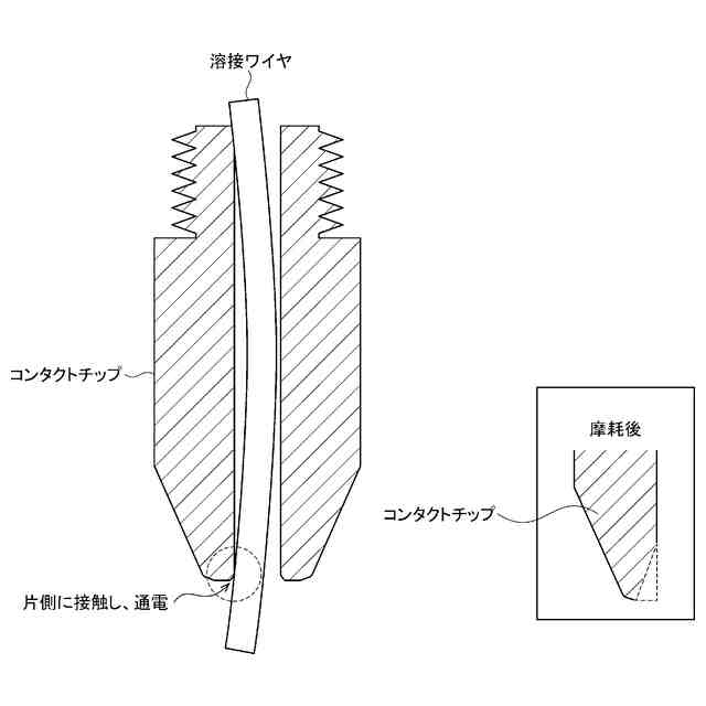 消耗電極式のガスシールドアーク溶接は、コンタクトチップを介して、常に送給される消耗電極(以降、溶接ワイヤとも称する。)に電流を送り、溶接ワイヤを溶融させ、アーク溶接を行う。このとき、溶接ワイヤはコンタクトチップに摺動しながら通電するため、主に凝着摩耗やアブレシブ摩耗といった摩耗形態の摩耗現象が顕著になる。アブレシブ摩耗は、ひっかき摩耗とも呼ばれる。