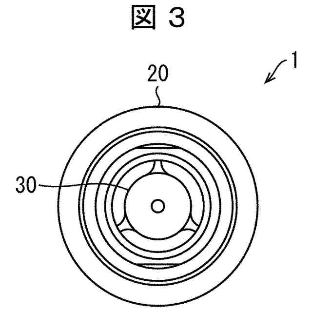 前記弁体は、前記弁座に着座する頭部と、前記頭部の下流側に位置している開口部を含むとともに前記軸方向に沿って前記第二管部の上流側と下流側とを連通する連通部と、前記連通部における前記頭部の下流側の位置に配置されている整流部と、を有し、