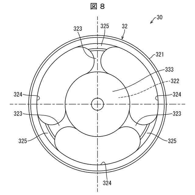 この圧力損失を低減するべく、様々な試みがされている。例えば、特許文献1では、弁体を保持するためにケーシング内に固定配置された弁体支持部材の二次側に、スペーサが設けられている。このスペーサにより、支持部材とスペーサの周囲を流れる流れは極めて滑らかで、剥離が生じたりすることが防止され、圧力損失が低減されることが示されている。