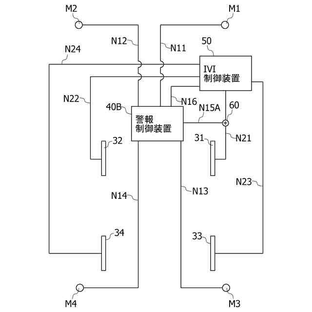 図2は、実施形態における、警報音用スピーカー、前部右スピーカー、前部左スピーカー、後部右スピーカー、後部左スピーカーの接続の一例を示す図である。