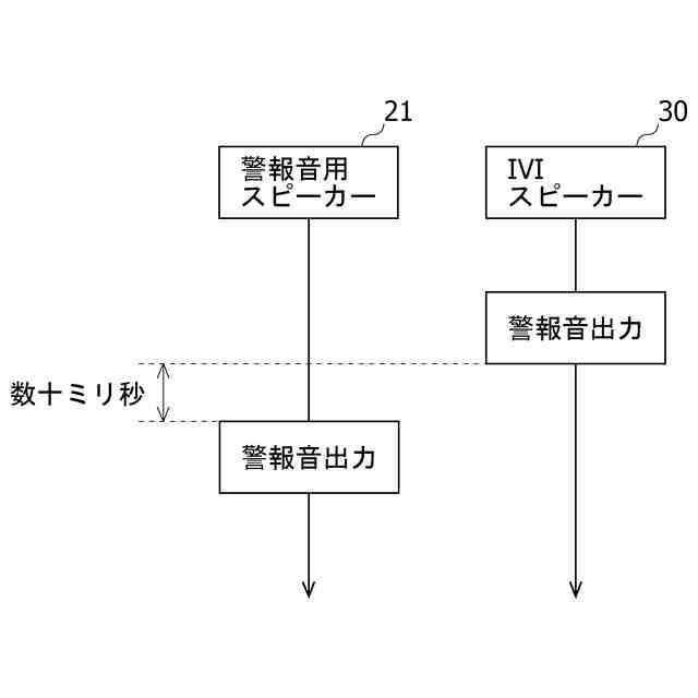図8は、第1変形例における警報音用スピーカーとIVIスピーカーの出力タイミングを例示する図である。