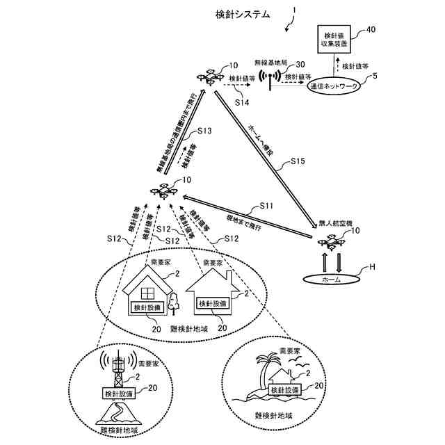 【解決手段】プロセッサ及び記憶装置を有する情報処理装置、地上に存在する一つ以上の検針設備と無線通信する第1通信装置、及び検針値等の通知先と通信可能な無線基地局と無線通信する第2通信装置を備えた無人航空機を、検針設備と通信可能な位置まで飛行させる。第1通信装置は、上記位置において検針設備と無線通信することにより検針値等を取得する。第2通信装置は、無線基地局と無線通信することにより検針値等を通知先に通知する。検針値等を取得した後、無線基地局と無線通信することができない場合、無人航空機は、無線基地局と通信可能な位置まで飛行し、第2通信装置が、上記位置において無線基地局と無線通信することにより検針値等を通知先に通知する。