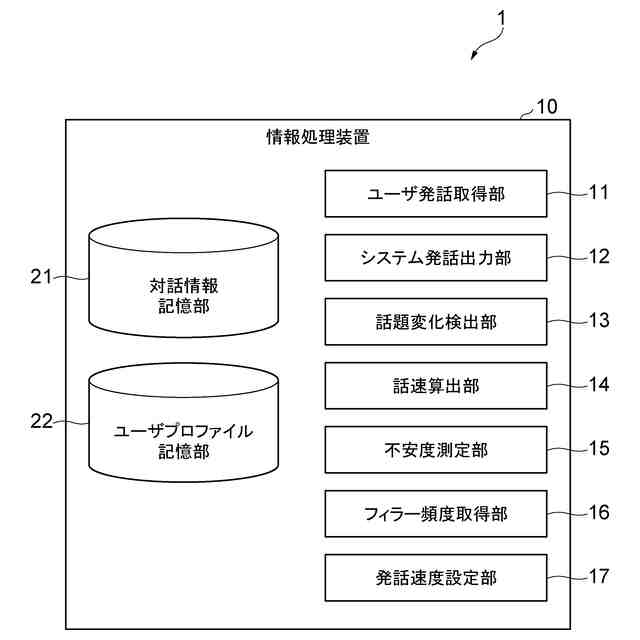 システム発話の発話速度がユーザの発話速度と同じ速度に設定された場合には、システム発話の、いわゆる機械らしさが増すこととなり、不自然な応答となっていた。また、ユーザ発話に応じてシステム発話の速度が設定される場合に、ユーザが、発話をどもる等した場合に、システム発話の速度が不自然に変化することとなり、ユーザに違和感を与えていた。