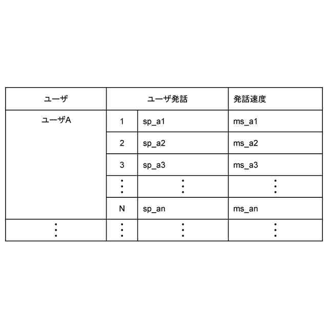 ユーザプロファイル記憶部に記憶された、直近の所定数(N)のユーザ発話及び発話速度を示す図である。
