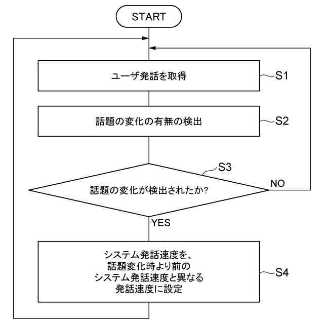 話題が変化した時である話題変化時より後の前記システム発話の速度であるシステム発話速度を、前記話題変化時より前の前記システム発話速度とは異なる発話速度に設定する発話速度設定部と、