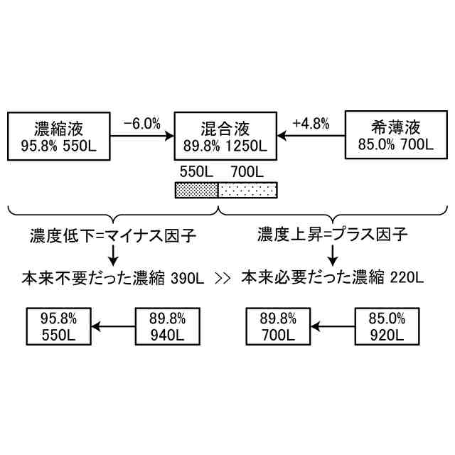 図5は、濃度範囲が異なる液体同士を混合した場合に自ずと発生する効率の低下について説明するための図である。