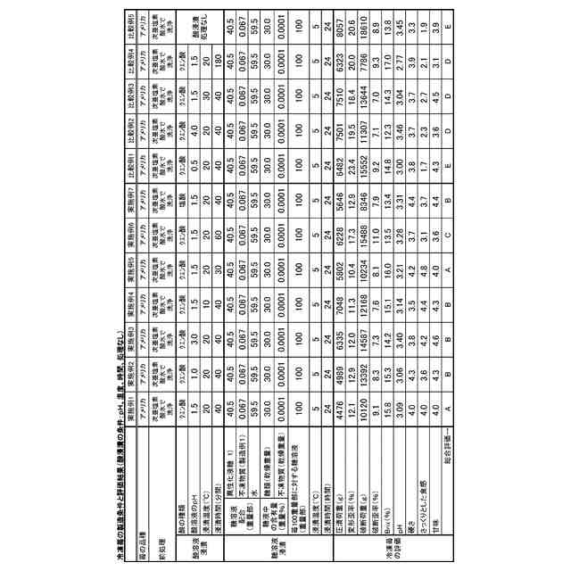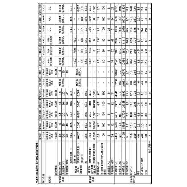 即ち、本発明の第一は、テクスチャーアナライザー(STABLE MICRO SYSTEMS社製「TA.XT PLUS」)で、縦に半割した苺を、断面を下にして試料台に置き、高さの最も高い部分にプランジャーが貫入するように設置し、幅30mm×30°のくさび形のプランジャーを使用し、測定速度が2mm/s、圧縮歪率90%で、-16~-18℃の温度下での圧潰荷重が2000~10000g、且つ変形歪率が8~18%である、冷凍苺に関する。好ましい実施態様は、Brixが12~17%である、前記冷凍苺に関する。本発明の第二は、テクスチャーアナライザー(STABLE MICRO SYSTEMS社製「TA.XT PLUS」)において、縦に半割した苺の断面を下にして試料台に置き、高さの最も高い部分にプランジャーが貫入するように設置し、該プランジャーがくさび形で幅30mm×30°であり、測定速度が2mm/s、圧縮歪率90%で、-16~-18℃の温度下の条件での圧潰荷重が2000~10000g、且つ変形歪率が8~18%である冷凍苺の製造方法であって、苺をpH1~3の酸溶液に、5~25℃で30~100分間浸漬すること、酸溶液浸漬後の苺を水洗すること、水洗後の苺100重量部を、糖溶液全体中、糖類を乾燥重量で20~35重量%、及び、不凍物質を乾燥重量で0.00002~0.005重量%含有する糖溶液80~120重量部に、3~25℃で10~40時間浸漬すること、糖溶液浸漬後の苺を急速冷凍すること、及び急速冷凍後の苺を-60~-15℃で1~450日間保存することを有することを特徴とする、冷凍苺の製造方法に関する。好ましい実施態様は、糖類が果糖、ぶどう糖、及び、ショ糖の群から選ばれる少なくとも1種であり、不凍物質が担子菌由来の抽出物、及び/又は、アブラナ科に属する植物の抽出物である、前記冷凍苺の製造方法に関する。