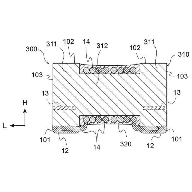 また、性能維持と小型化の両立のために金属磁性材料を用いたコイル部品が知られている。金属磁性材料が用いられるとフェライト磁性材料よりも磁気飽和特性が向上することから、金属磁性材料を用いたコイル部品は、直流電流の印加される用途で用いられる。金属磁性材料を用いたコイル部品は、磁気飽和特性の向上により、磁性材料の占める体積割合が抑制されて小型化が可能となる。
