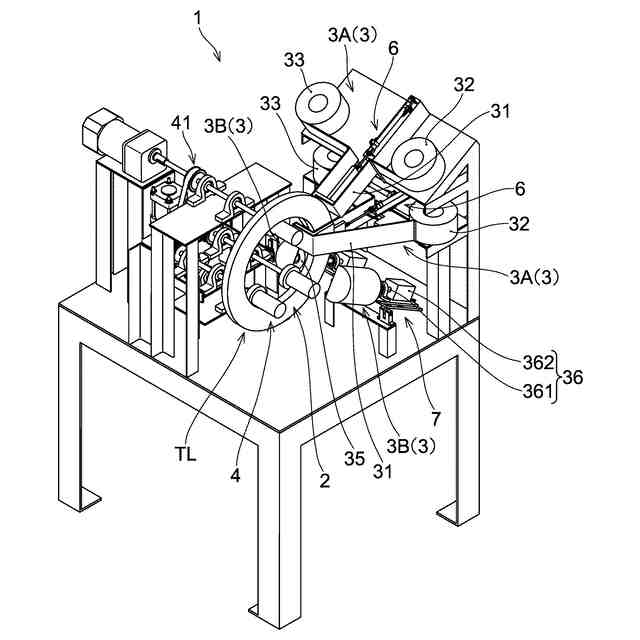 本実施形態に係るツール清掃装置1(図1~図4参照)は、略円形の切断用ツールTL(図2~図4参照)を清掃する装置である。切断用ツールTLは、金属板等の切断対象物Wを切断する部材である。切断用ツールTLは、切断工程において切断対象物Wを切断した際に、切粉等の異物が付着する場合がある。また、切断用ツールTLの表面に潤滑油等の潤滑剤が塗布される場合には、潤滑剤に切粉が混じった状態となり得る。また、切断用ツールTLの表面には、錆が発生する場合もある。本実施形態に係るツール清掃装置1(図1~図4参照)は、後述するように、切断用ツールTLの表面に存在する異物(たとえば、切粉、錆等)を除去可能に構成されている。切断用ツールTLは、本実施形態では、金属板等の切断対象物Wを切断する刃物BLであり、切断用ツールが刃物BLである場合を例に挙げて説明する。しかし、切断用ツールTLは、刃物BLに限定されず、切断装置において複数の刃物BLの間隔を保持するスペーサ等の中間部材ME(図5A等参照)を含んでいてもよい。切断用ツールTLは、軸方向D1に貫通する貫通孔を有する円筒状に形成されている。また、後述するように、切断用ツールTLは、貫通孔に面する内周面が、後述するハンドリングロボット202により把持され、ツール清掃装置1の後述する保持部2によって保持され得る。