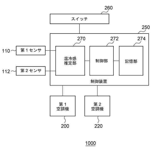 【解決手段】制御部272は、対象者の温冷感として、第1温熱環境情報をもとに上半身側温冷感を推定するとともに、第1温熱環境情報と第2温熱環境情報とをもとに全身温冷感を推定する。制御部272は、温冷感を-3(寒い)、-2(涼しい)、-1(やや涼しい)、0(中立)、+1(やや暖かい)、+2(暖かい)、+3(暑い)からなる7段階評価尺度で表した場合に、上半身側温冷感が-1.5から-0.5の範囲内に入るように第1空調機200を制御し、かつ全身温冷感が-0.5から+0.5の範囲内に入るように第2空調機220を制御する。