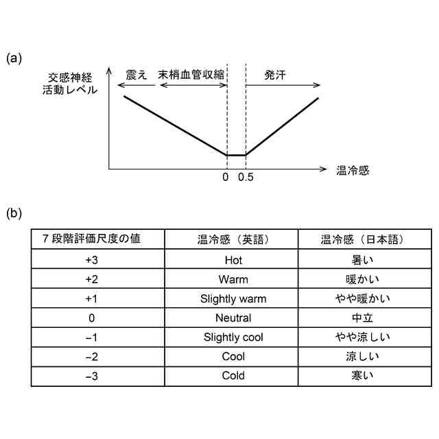 温冷感を-3(寒い)、-2(涼しい)、-1(やや涼しい)、0(中立)、+1(やや暖かい)、+2(暖かい)、+3(暑い)からなる7段階評価尺度で表した場合に、