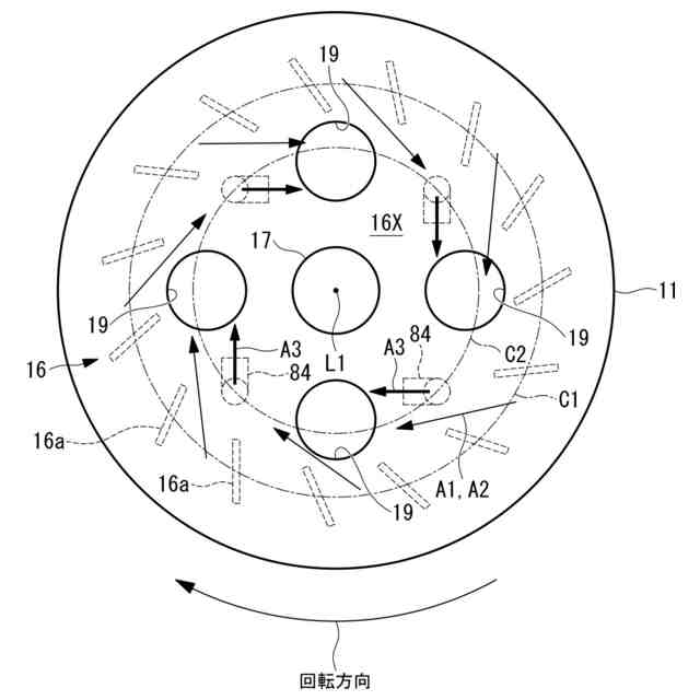 各前記噴出部は、前記円周方向に並んで配置され、かつ、前記円周方向において隣り合う前記出口ポート間に配置されている
