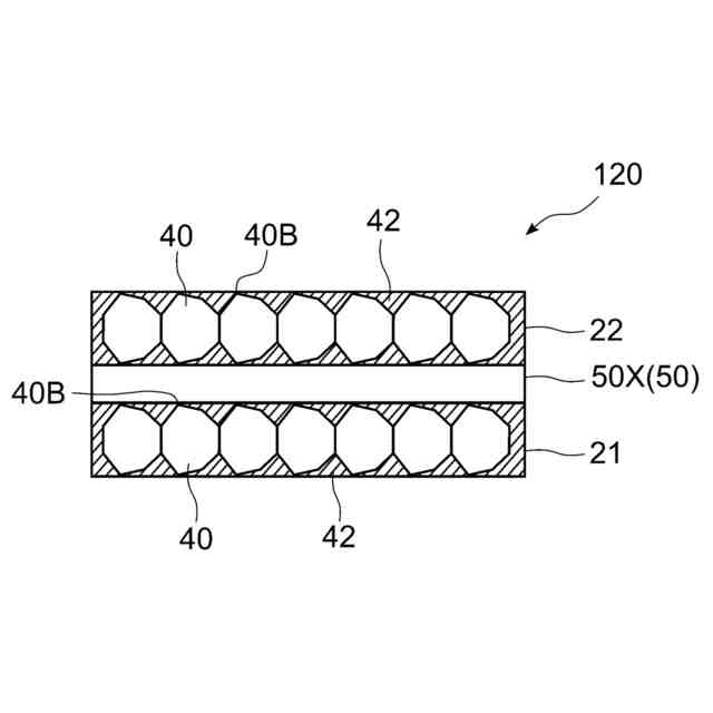 このように、八面体以上のダイヤモンドを用い、ダイヤモンドの頂点または稜線(以下、「頂点または稜線」を「エッジ部」と称する。)がダイヤモンド含有金属層の一方の面側の端部に来るように、ダイヤモンドを1層に配置させることで、薄くできるとともに、隣接するダイヤモンドが面で向かい合った構造となりやすく、密によるならい動作もあり、隣接するダイヤモンド同士が面接触する面積が増大する。その結果、熱源体からの熱流路(縦ルート)に加えて、ダイヤモンド間の熱流路(横ルート)を形成することで、より広く熱を拡散することができ、ダイヤモンドの伝熱性能を十分に発揮することができる。