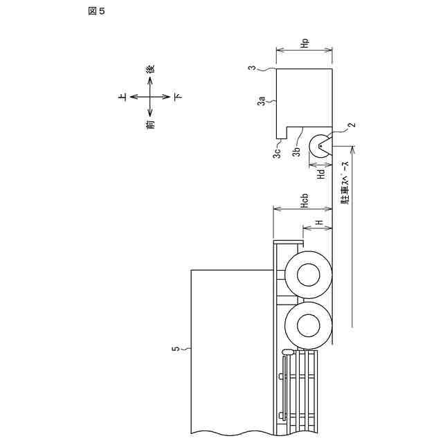 地面から前記電動貨物自動車の後輪の後方の荷台下に設けられた構成部材のうち最も前記地面に近い構成部材までの高さをHとした場合に、