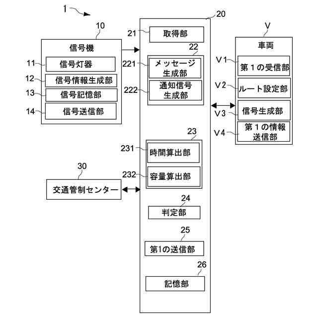 上記取得部は、1以上の信号機または上記1以上の信号機を管理する交通管制センターから送信される上記1以上の信号機に関する信号情報を取得する。