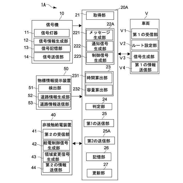 上記記憶部は、上記1以上の信号機の周囲の路面に設けられた非接触給電装置に関する非接触給電情報を記憶する。