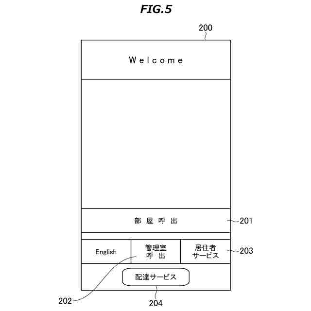 図5は、集合玄関機の表示部に表示される初期画面の一例を示す図である。