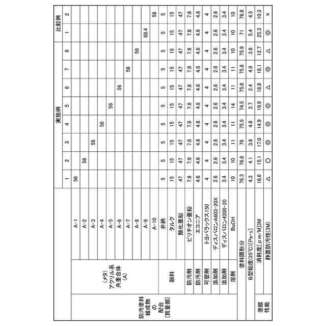 防汚塗料の低粘度化のために、例えば、塗膜形成成分である樹脂を低分子量化すれば、有機溶剤量が少なくても組成物の粘度を低下させることができる。しかし、その場合は、塗膜の初期の塗膜の消耗度が過度に速くなり、その後は塗膜消耗速度が遅くなる傾向があり、長期にわたって安定した防汚性を得ることが難しいという問題がある。このように、防汚塗料組成物の低粘度化と、防汚塗膜の良好な消耗度とはトレードオフの関係にあり、これらを両立できる防汚塗料組成物が求められていた。