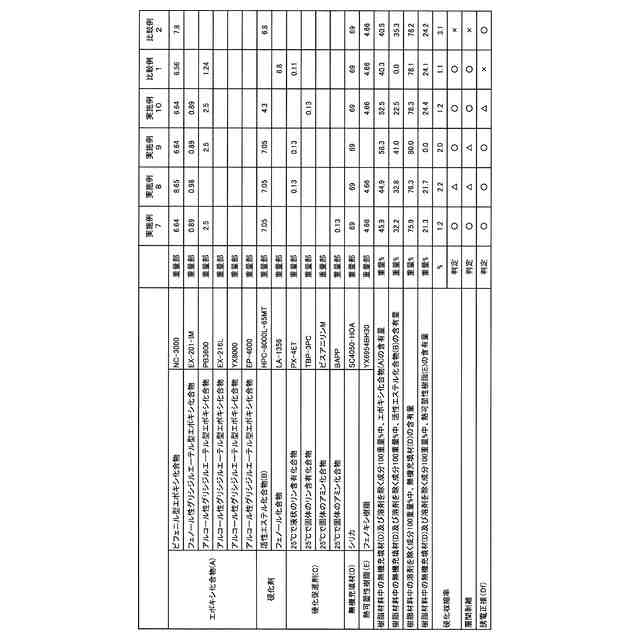 項1.エポキシ化合物(A)と、活性エステル化合物(B)と、硬化促進剤(C)と、無機充填材(D)とを含み、樹脂材料の25℃での密度をρ