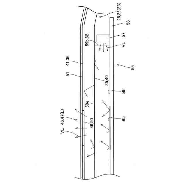 また、本発明のステアリング装置用パッドにおいて、導光体の下面側に、可視光光源から発光される可視光を上方に向かうように偏向可能な反射部を、配設させ、