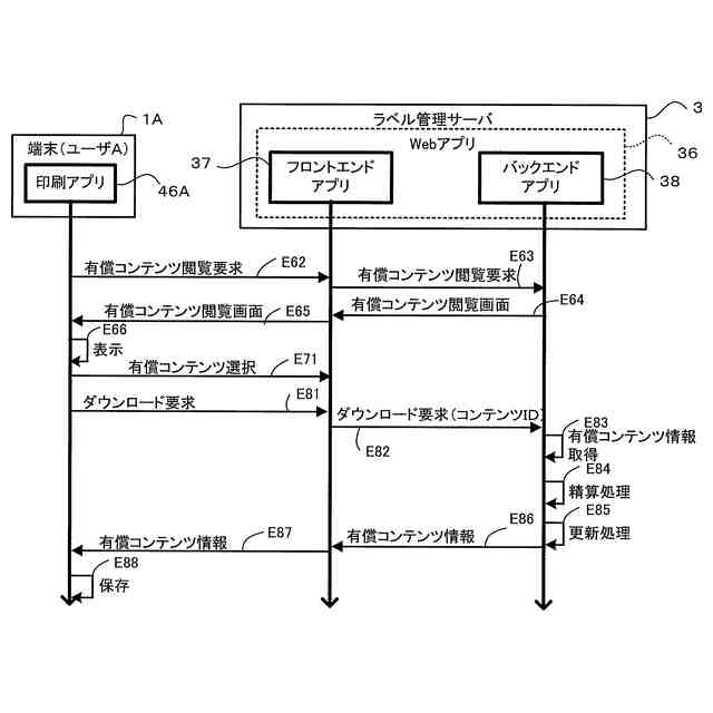 有償コンテンツ購入処理の一例を示すシーケンス図である。