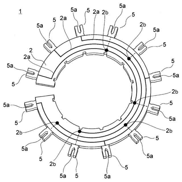 各前記端子(5)には、対応するコイル(110)に接続されているコイル配線(111)を挟み込んで電気的に接続させることができる接続部(5a)が形成されている、