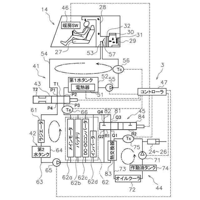 しかしながら、電気ヒータによって外気温度まで冷えた水を温めるため、電気ヒータに必要な電力が大きくなり、作業を行うための稼働時間が短くなっていた。