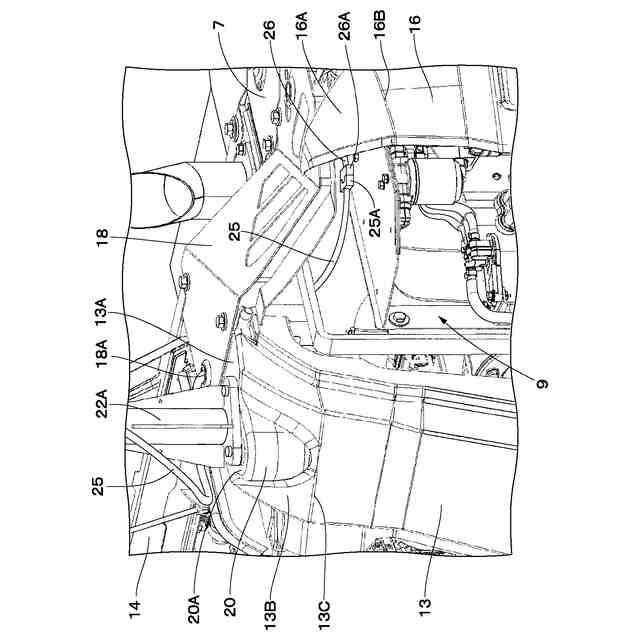 原動機カバーおよび左後カバーを開いた状態で、左側のアンテナ装置を見た斜視図である。