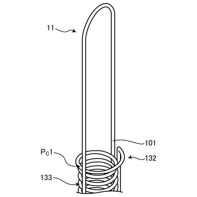 当該コンタクトプローブは、ひと続きの線材を屈曲させてなり、
