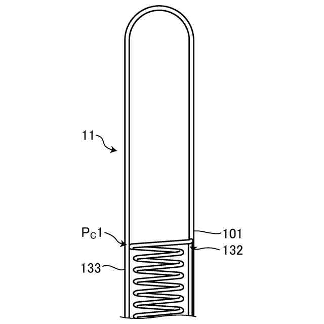 また、本発明にかかるコンタクトプローブは、上記の発明において、前記第1端子部は、前記第1延在部から軸線方向に沿って延びた後、前記ばね部側に折り返してなり、