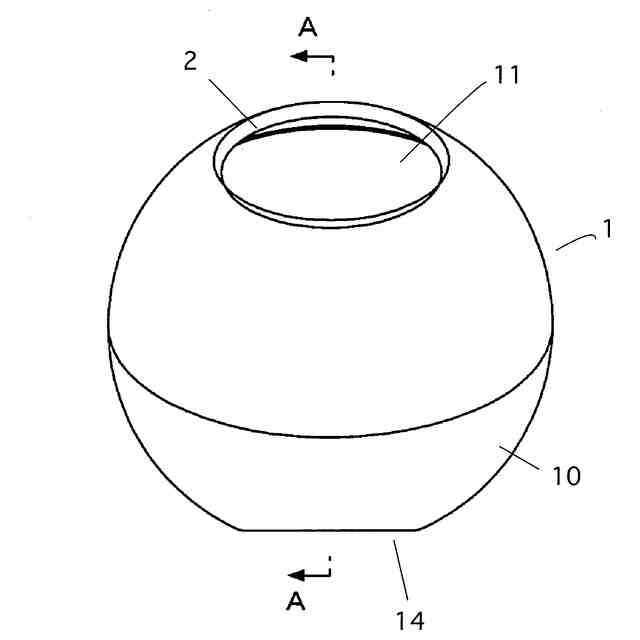 また、請求項2記載の発明は、前記のくず入れにおいて、筐体はほぼ球形とし、筐体の下端に平坦部を設けることにより筐体を置く際の底部としたことを特徴とする。
