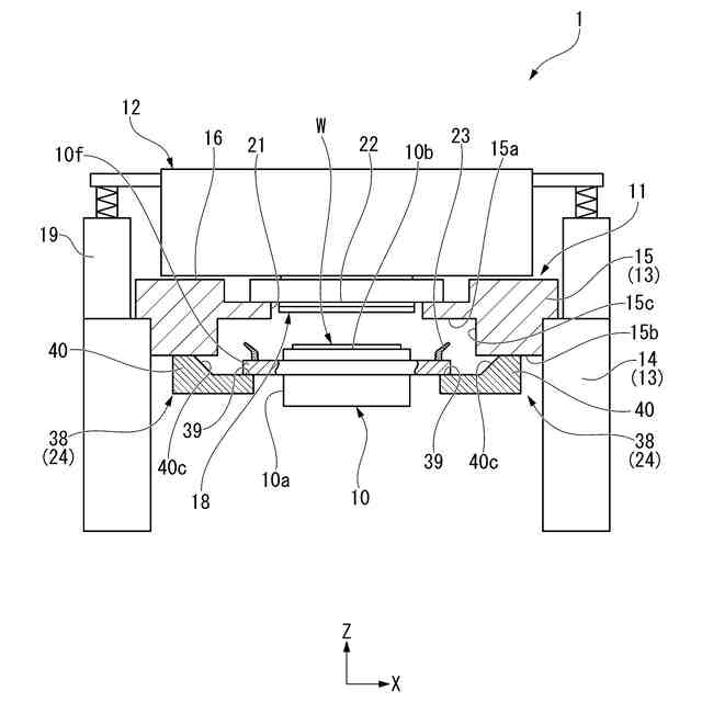このため、引用文献1,2に記載のプローバでは、ウエハチャックの落下を機械的に規制する落下規制機構が設けられている。この落下規制機構は、ウエハチャックと筐体の天井壁のいずれか一方に、他方に対して機械的に係合可能なフック部材が設けられている。このプローバでは、ウエハチャックの真空吸着とともにフック部材を相手部材に係合可能な位置に変位させることにより、万が一のウエハチャックの落下を規制することができる。