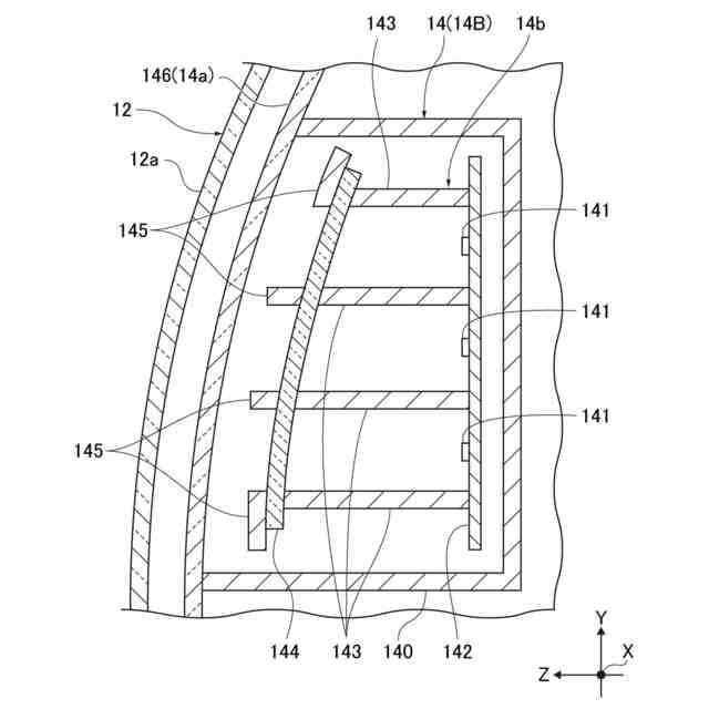 以下、本開示に係る表示装置の一例として実施例1の図面を参照しつつ説明する。以下の説明では、自車1(車両)において、自車1が進行する方向を前後方向Zとし、前後方向Zを水平面に沿う状態とした際の鉛直方向を上下方向Yとし、前後方向Z及び上下方向Yに直交する方向(水平方向)を幅方向Xとする。前後方向Zでは、後述のアウターレンズ146が設けられる側を前側とする。
