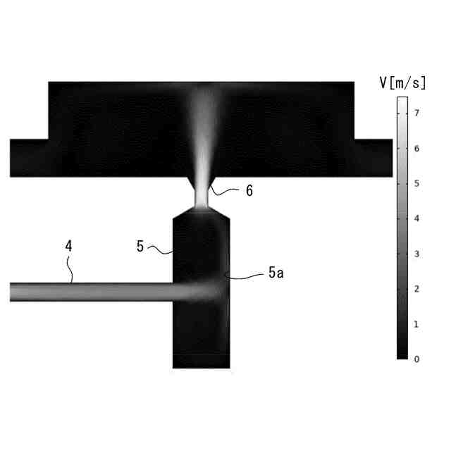 特許文献1の溶融試料浮遊装置は、浮遊用ガスの注入量および排出量を調整する機構を要するため、複雑な構造となる。また、溶融試料浮遊装置では、一般に、レーザ光発振系を下方に配置するため、浮遊用ガスを下方以外の例えば水平方向から導入する必要がある。そのため、浮遊用ガスは流れ方向を水平方向から上方へと変更して試料に噴出される。この結果、浮遊用ガスの流れ方向の変化に伴う不均一な流速分布が生じる。不均一な流速分布によって、浮遊用ガスが試料に対して均等に噴射されず、試料の空中での静止安定性が損なわれる。特許文献1の溶融試料浮遊装置では、浮遊用ガスの流速分布の均一化について、特段の言及がなく、改善の余地がある。